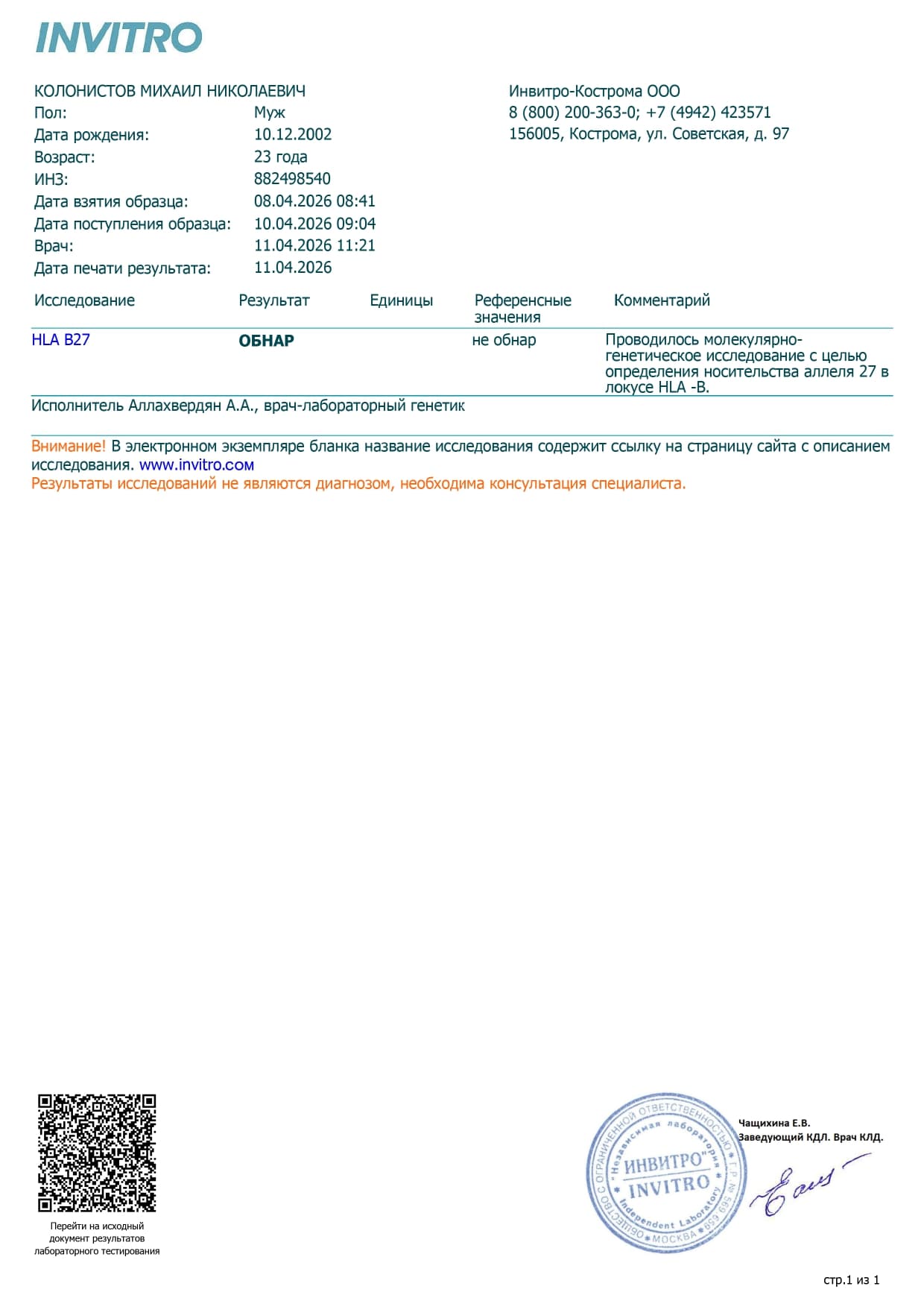 Открыть чат с ИНВИТРО РФ